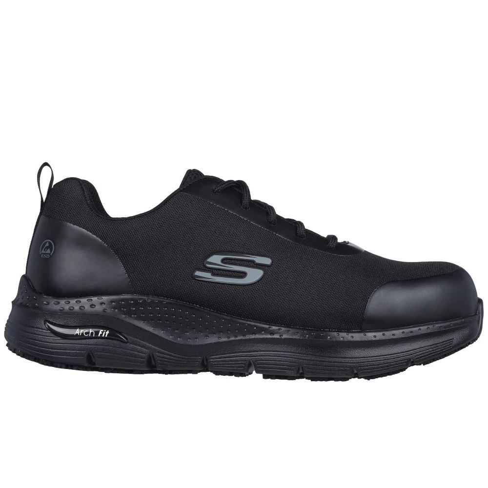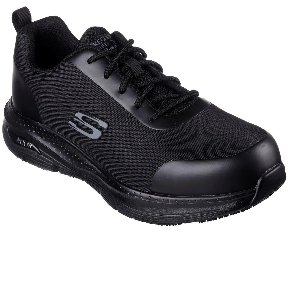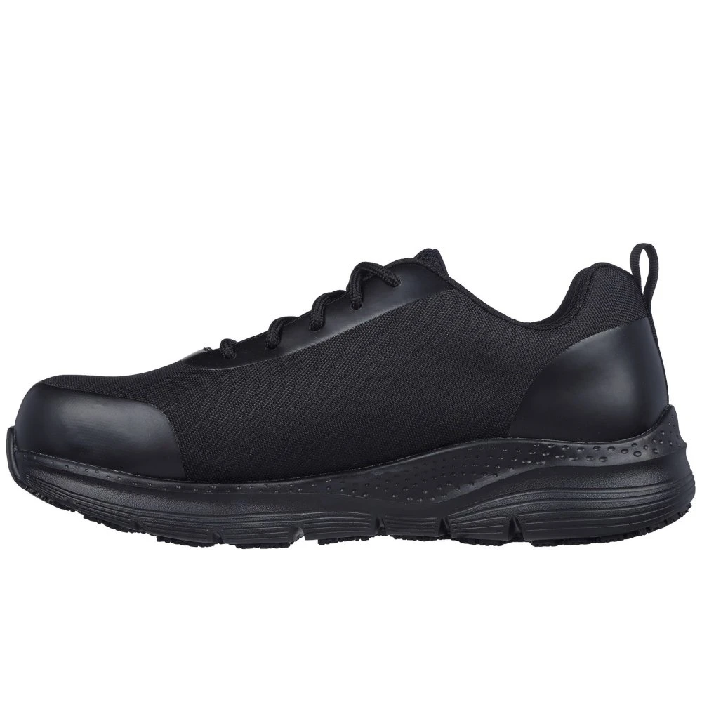 Enjoy all-day supportive cushioned comfort wearing Skechers Work: Arch Fit SR – Ringstap. This lace-up slip-resistant design features a Repelwell treated mesh and synthetic upper with removable Arch Fit insole and a lightweight alloy safety toe.