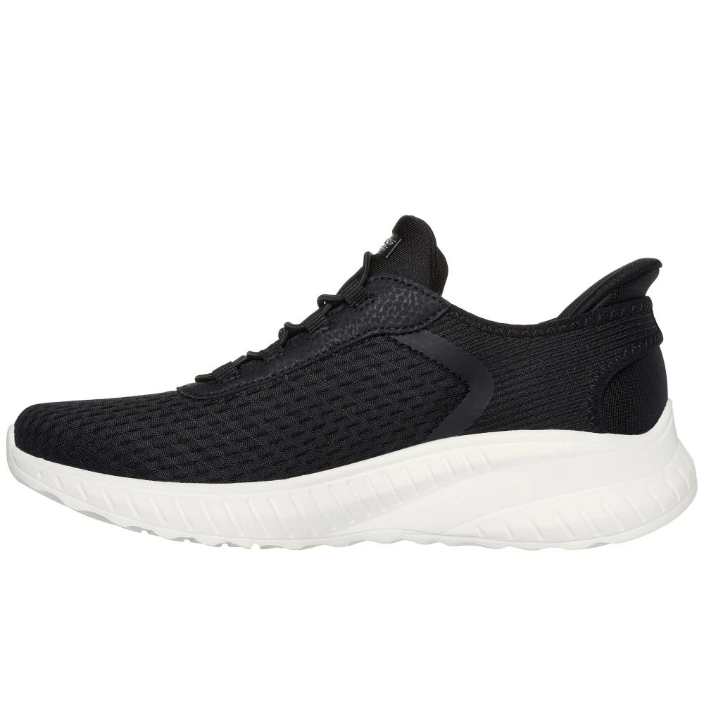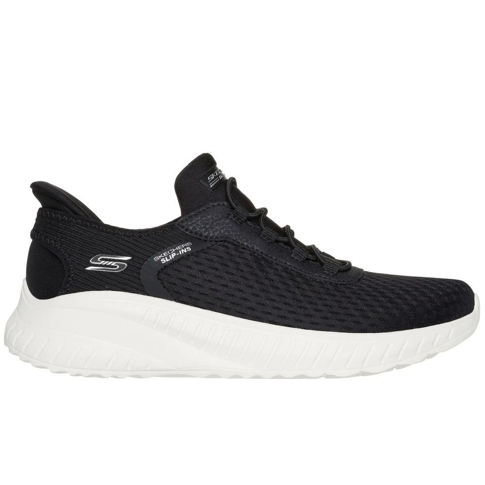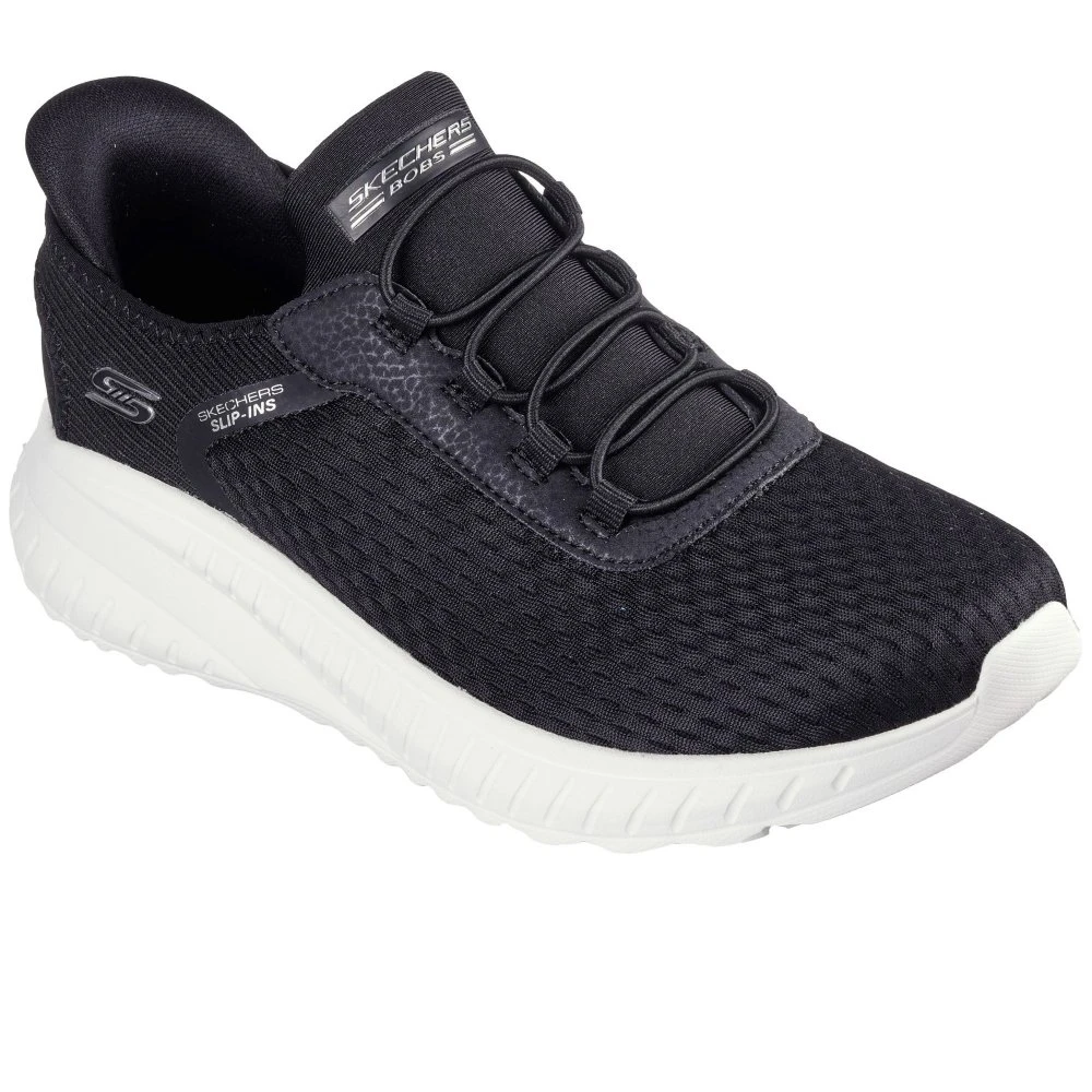 Step into athletic style and comfort wearing Skechers Hands Free Slip-ins: Bobs Sport Squad Chaos – In Colour. This fashion style features an engineered knit upper with stretch laces and a cushioned Skechers Memory Foam insole.