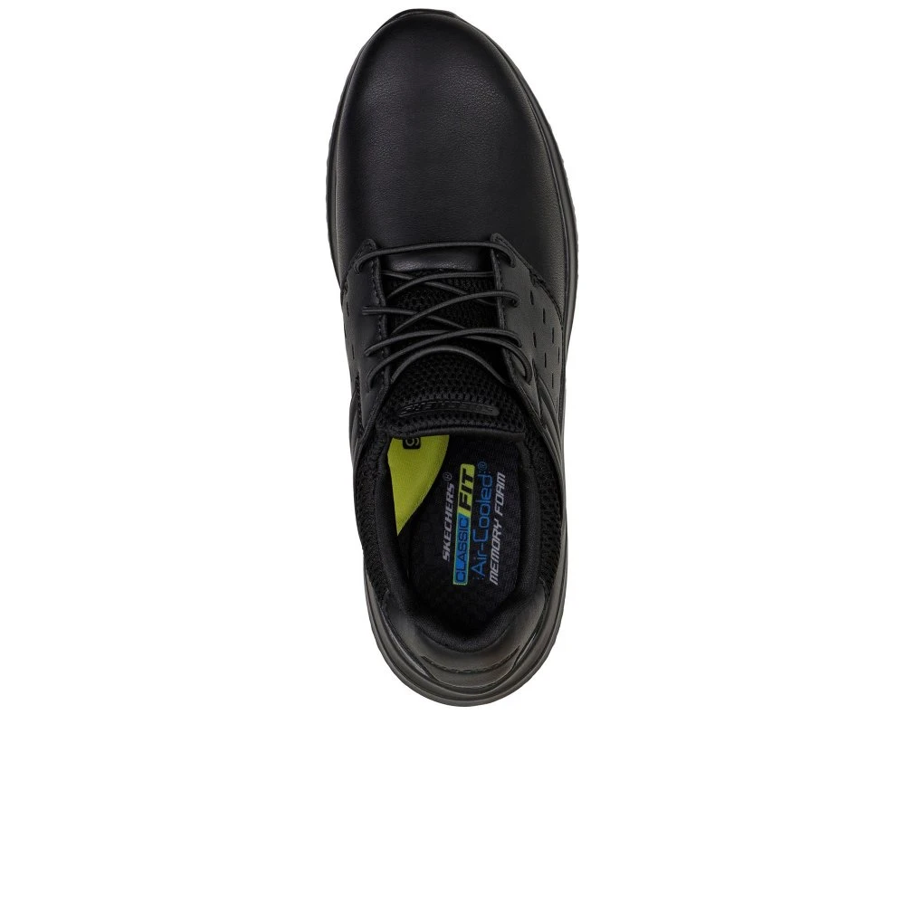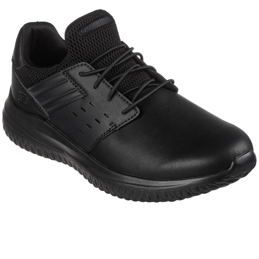 The lightweight and versatile Skechers Street Delson 3.0 – Ezra gets an update in cushioned comfort. This Classic Fit slip-on features a leather upper with an Air-Cooled Memory Foam insole and Goga Mat Arch cushioning for added support.