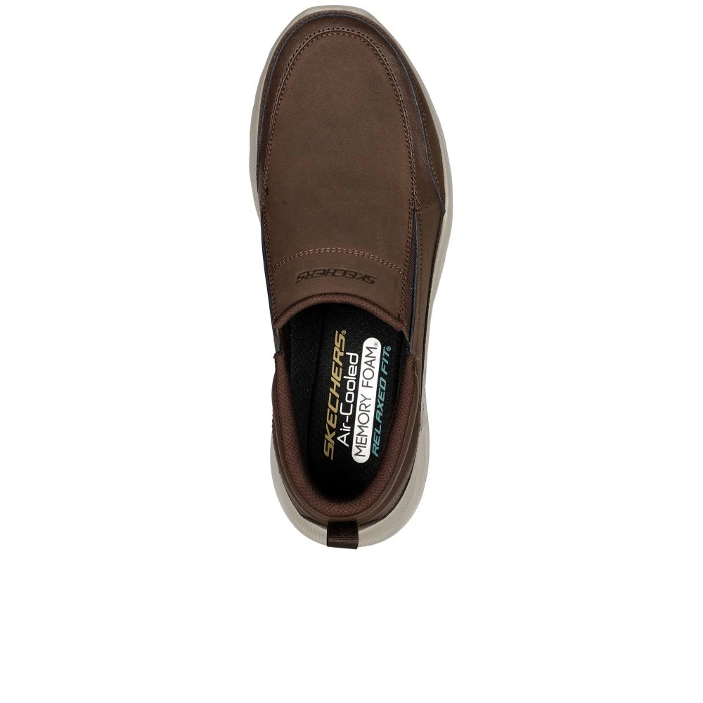 Find the perfect blend of refined style and sporty comfort with Skechers Relaxed Fit: Equalizer 5.0 – Harvey. This slip-on features a smooth nubuck leather upper with a cushioned Skechers Air-Cooled Memory Foam insole.