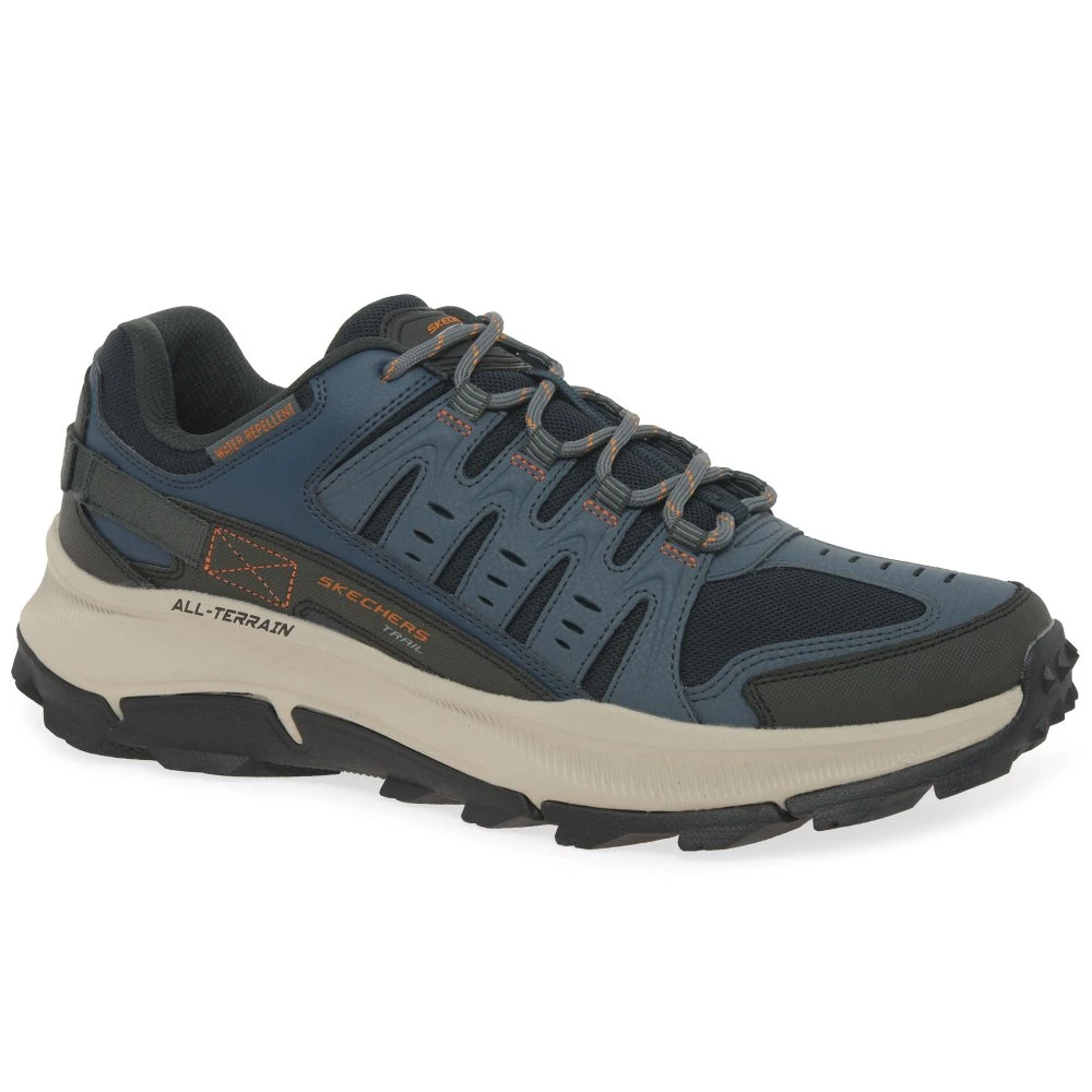 A stylish yet sturdy option for casual wear, the Skechers Equalizer 5.0 Trail Solix men’s walking shoes feature leather uppers with water-repellent technology to protect feet. Skechers Memory Foam cushioned insoles allow for all day comfort.