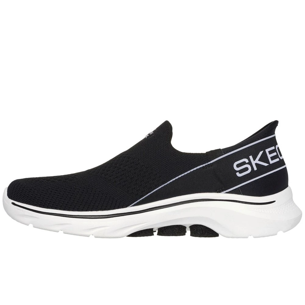 Step-in to convenient walking comfort wearing Skechers Hands Free Slip-ins: GO WALK 7 – Mia. Designed with our exclusive Heel Pillow, this sporty TOUCHLESS FIT style features a Stretch Knit mesh upper with a branded heel band