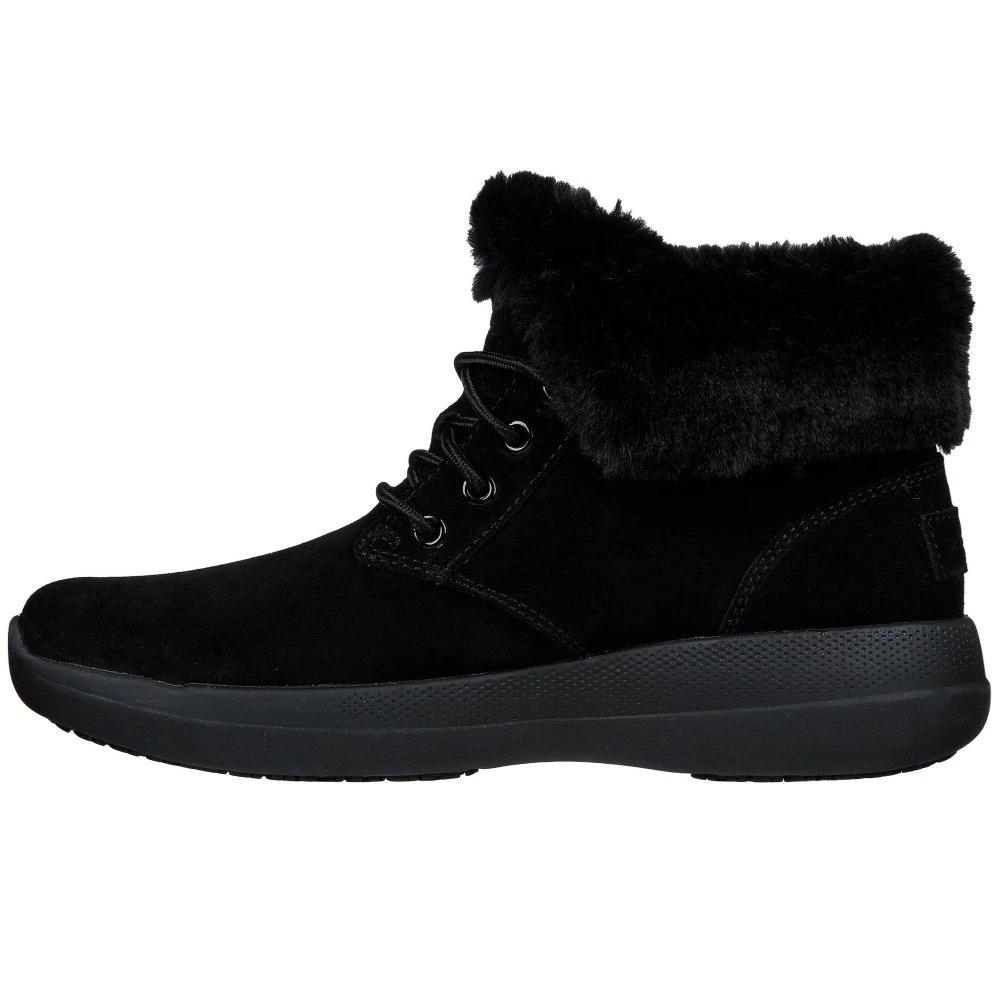 Stay cozy throughout the season in surefooted comfort with Skechers GO WALK Stability Boot – Comfy Days. This casual cold-weather lace-up boot features a 3M Scotchgard treated suede upper with faux-fur trim and a Skechers Air-Cooled Goga Mat insole