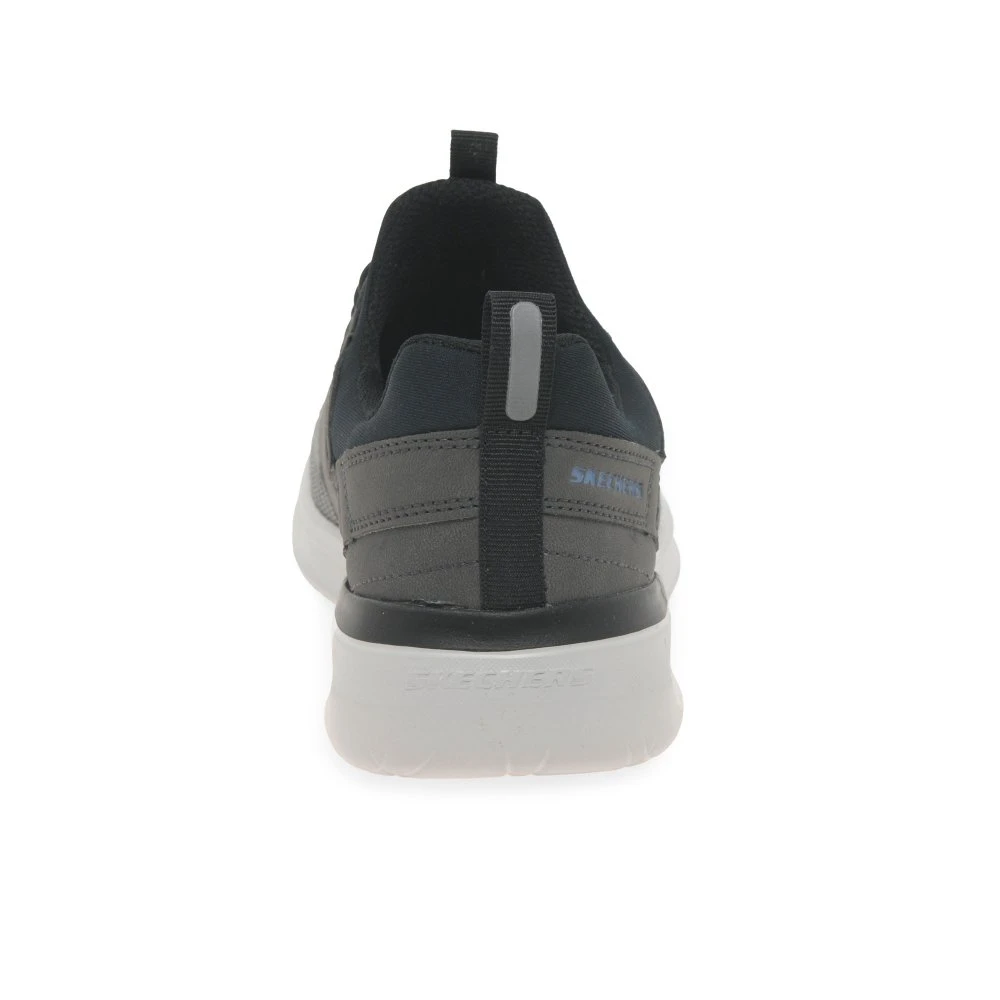 Styling is easy with the Skechers Lattimore Mens Trainers, which showcase breathable textile uppers with a man-made overlay. The sporty, lightweight shoe uses a Goga Mat arch for added flexibility and a cushioned insole for a personalised step.