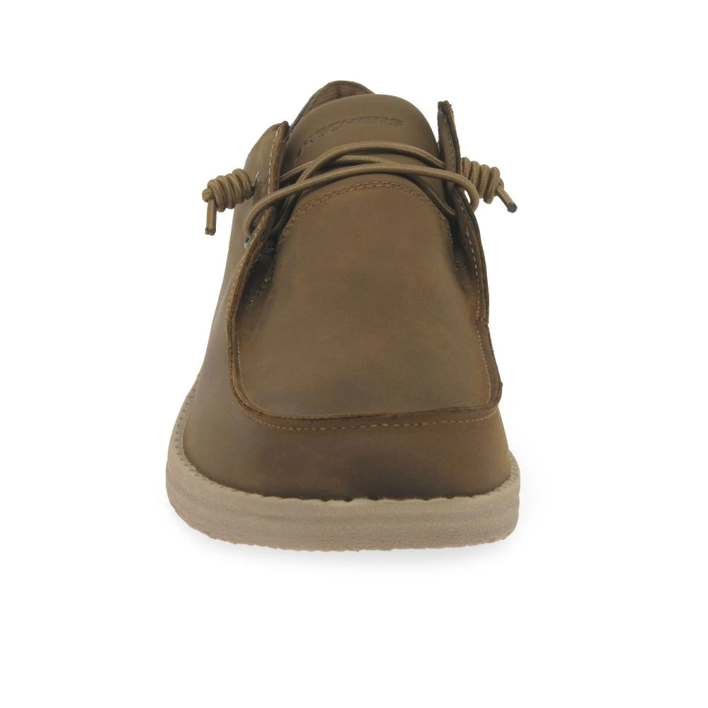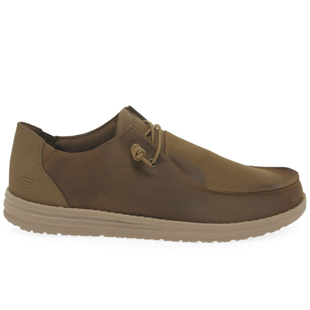 The Skechers Melson Ramilo men’s shoes showcase a soft oiled leather upper with elastic lace fastening. They come in a relaxed fit for a large tread surface on your steps and are easily secured with elastic laces and contrast stitch detailing.