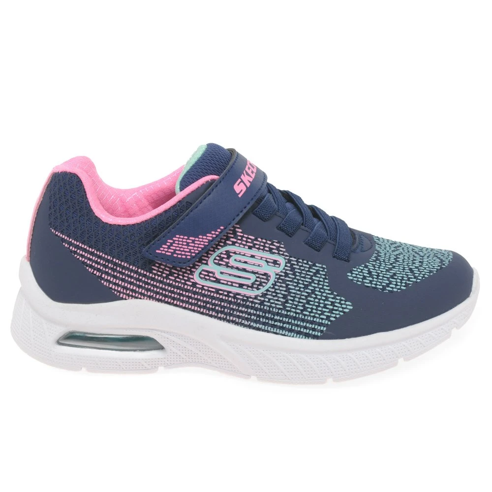 Everyday comfort in style, the Skechers Microspec Max Plus girls’ sports trainers feature soft mesh uppers for a lightweight, breathable style. A visible Skech-Air midsole provides extra comfort.