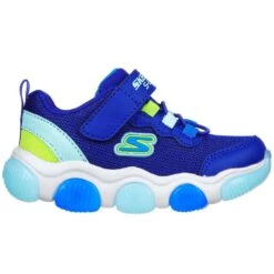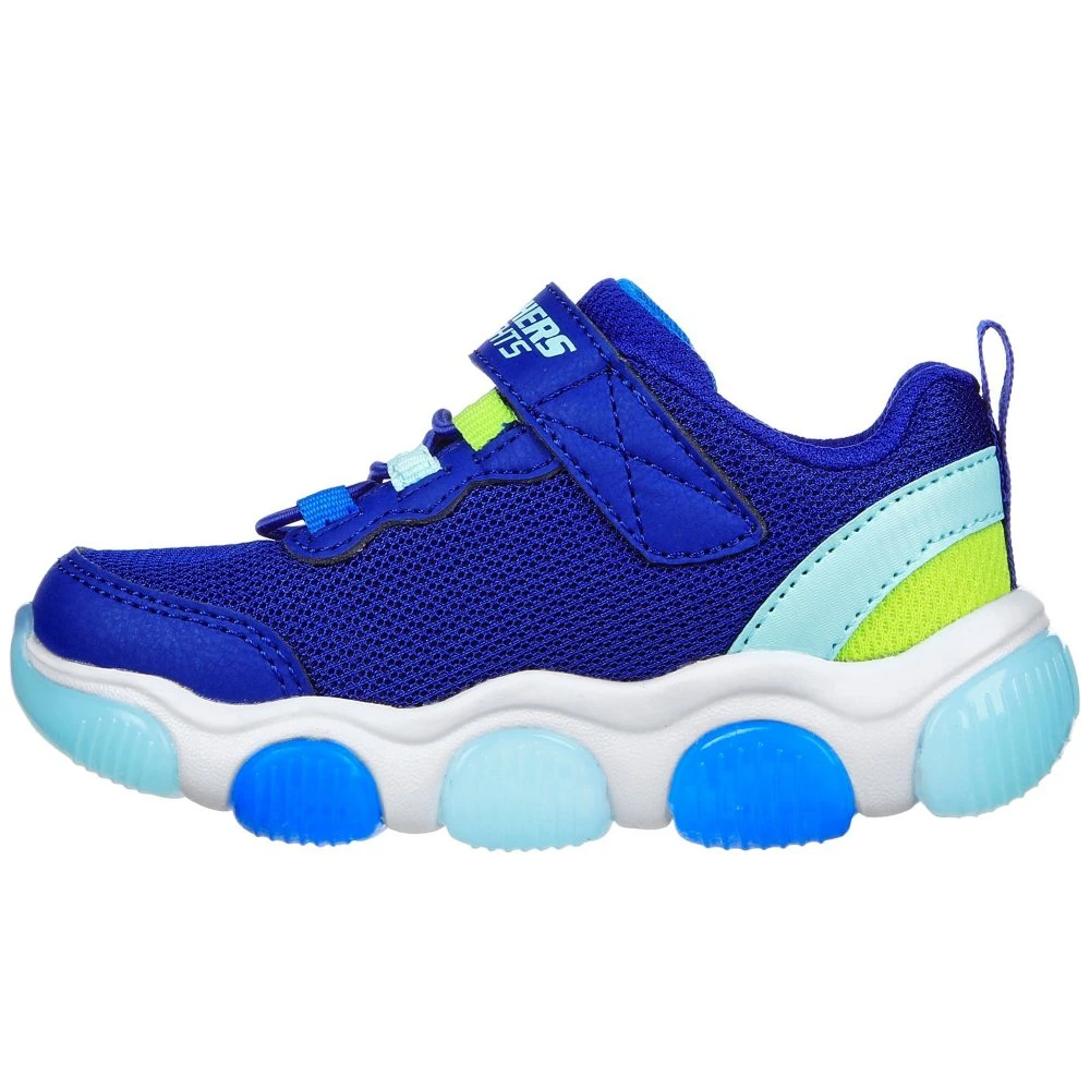 Experience the fun of a glow party with every step wearing Skechers S-Lights: Mighty Glow. This sporty design features a gore mesh and synthetic upper with an adjustable hook and loop strap closure and translucent light-up outsole pops.