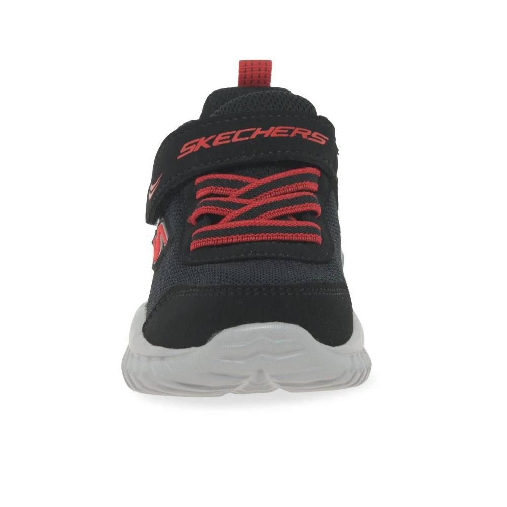 The Skechers Nitro Sprint toddlers sports trainers are easy-wearing and feature a sporty synthetic and breathable mesh upper. The slip-on style can be secured with a rip tape fastening for an easy on and off fit.