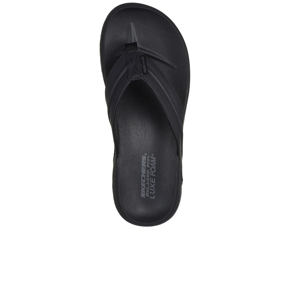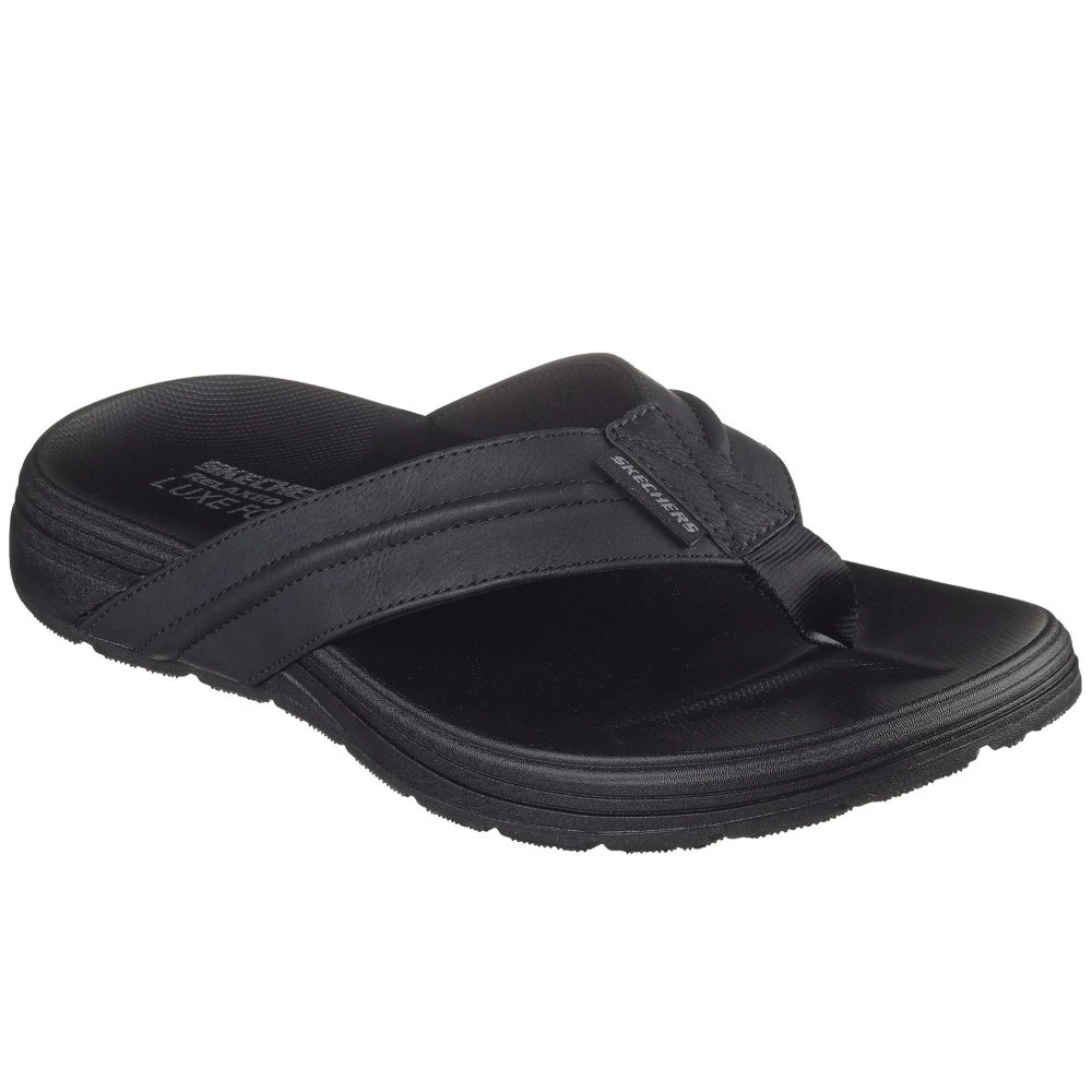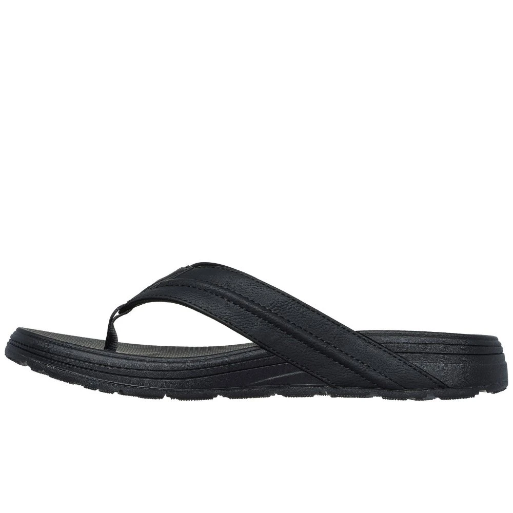Bring on the sand, surf, and sun in Skechers Patino – Marlee. This Relaxed Fit 3-point thong sandal features a smooth vegan leather upper with stitching detail and a contoured Luxe Foam footbed.