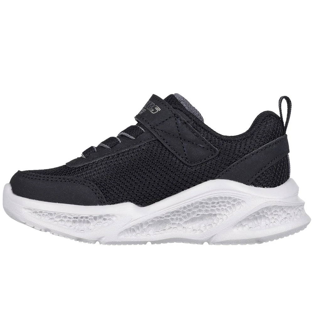 Illuminate your steps in sporty style and comfort with Skechers S-Lights: Meteor-Lights. This stretch-laced design has a mesh and synthetic upper, plus a fun light-up midsole.