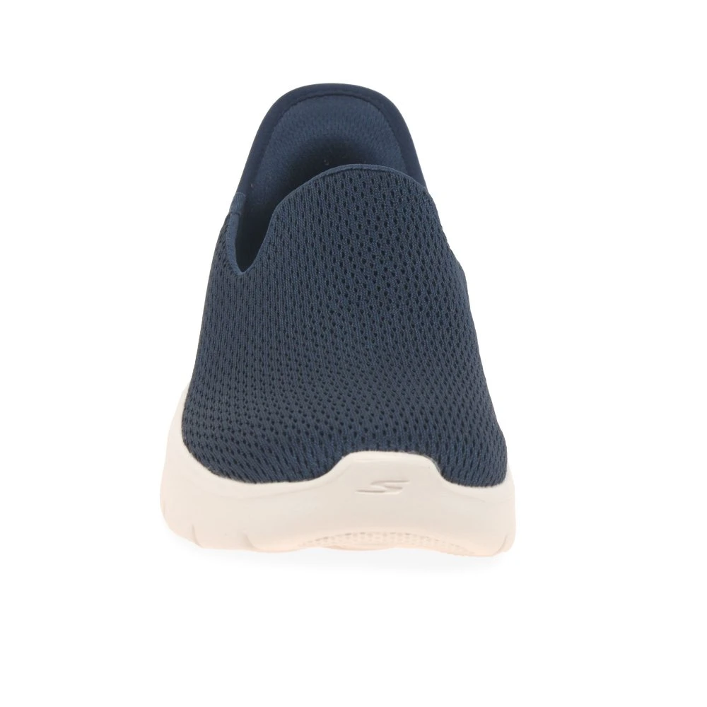 Pritoritise all-day comfort with the Skechers Slip In Go Walk Flex Women’s Trainers. Step-in to convenient walking comfort and cushioning with this laceless design featuring a breathable athletic mesh upper and an Air-cooled Memory Foam insole.