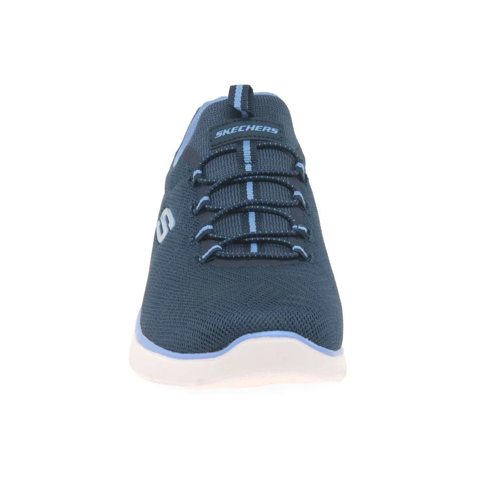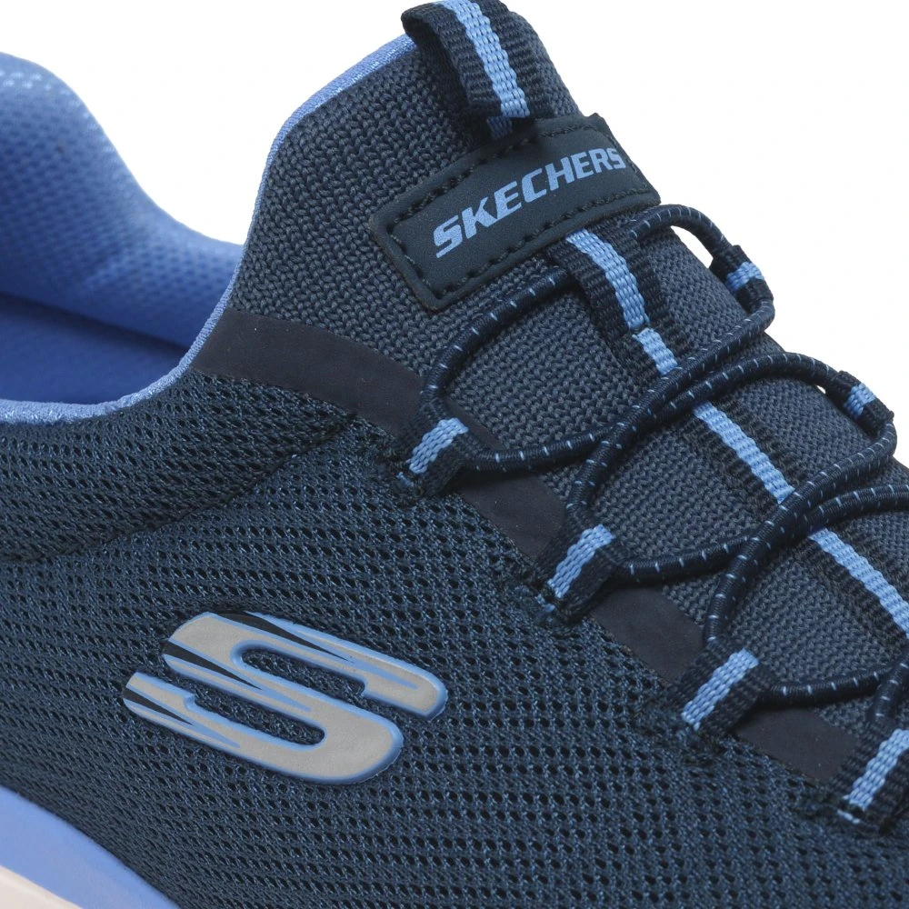 The perfect mix of comfortable and athletic, the Skechers Summits womens trainers feature a stretch-laces vegan design. With geo mesh uppers and cushioned Skechers Memory Foam comfort insoles, this style gives each step a comfortable and bouncy feel.