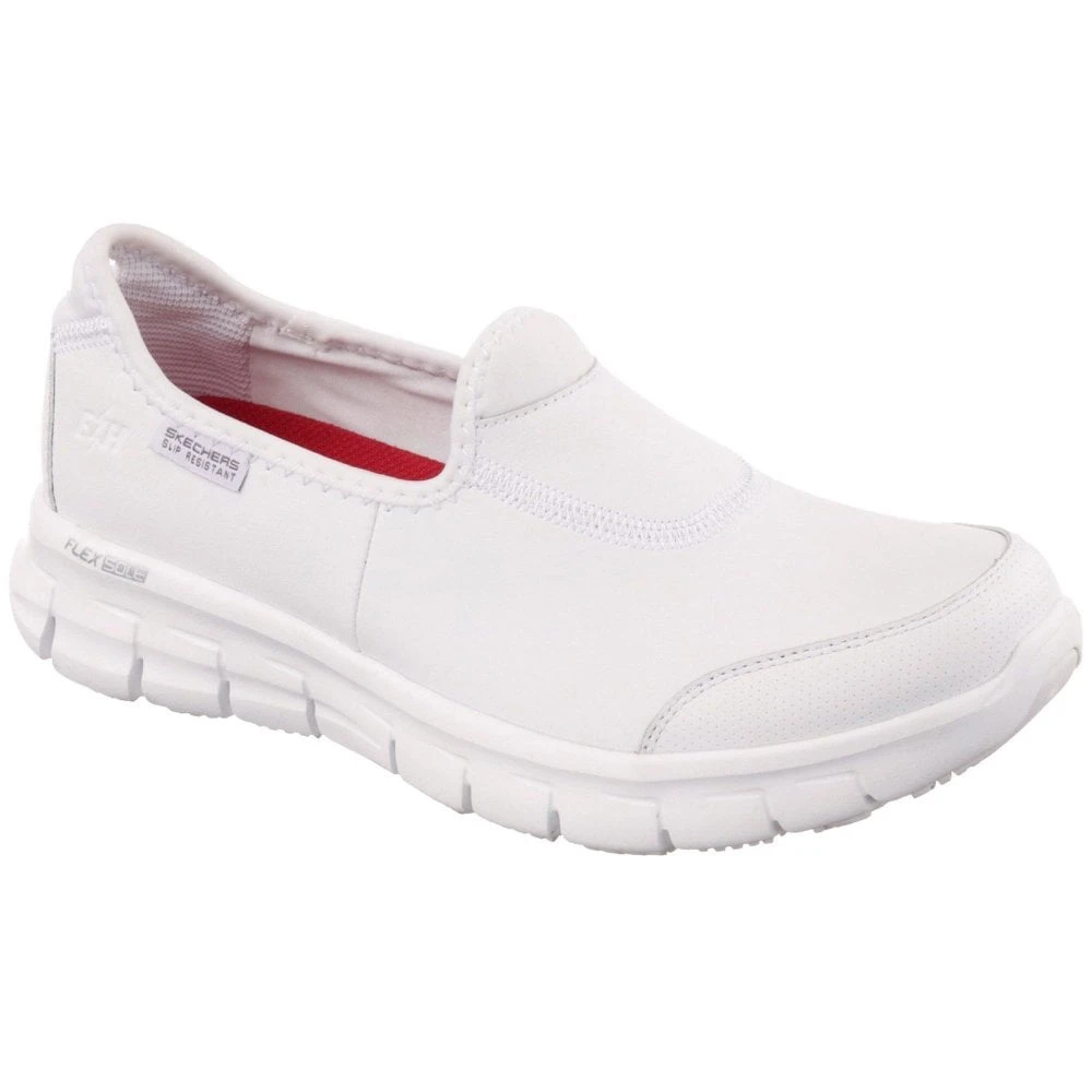 A comfortable favourite gets serious with the SKECHERS Work: Relaxed Fit – Sure Track shoe. Smooth leather upper in a slip on casual slip resistant work shoe with stitching accents and Memory Foam insole.