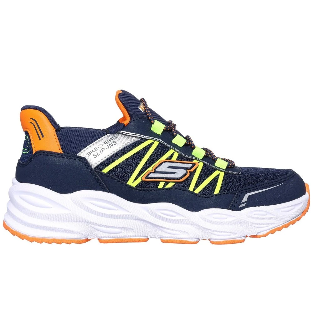 Simply step in to a fun pair of Skechers Hands Free Slip-ins: Turbo Tread. Designed with our exclusive Heel Pillow, this lightweight sporty style features a mesh and synthetic upper with a stretch-lace front panel