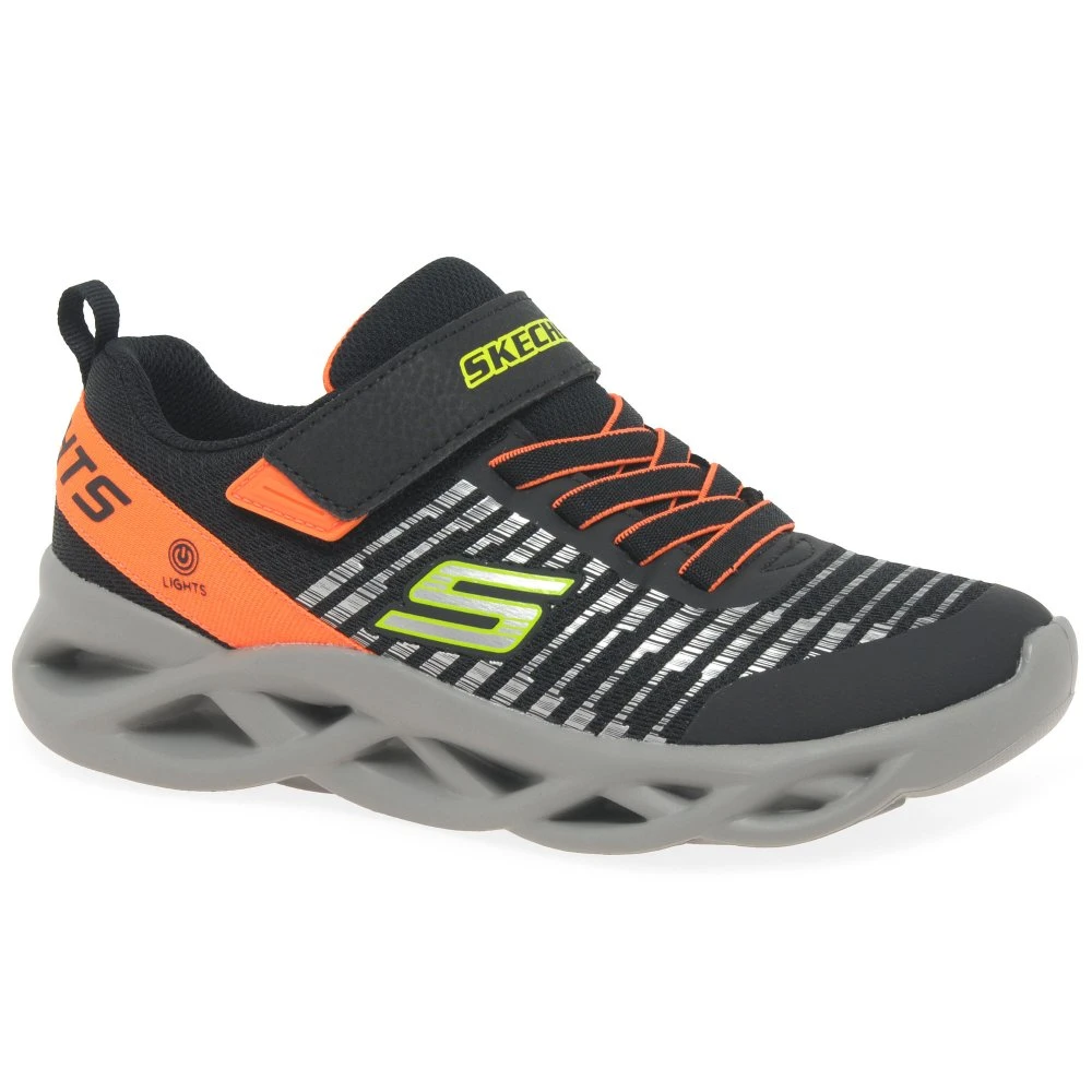 The Twisty Bright boys trainers from Skechers partners a flexible sporty design with a durable and shock-absorbing light up midsole to make playtime a lasting memory.
