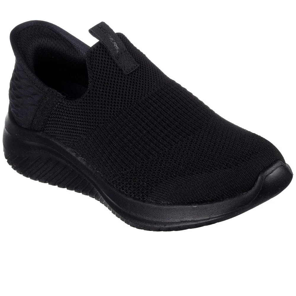 Step into effortless style and comfort with Skechers Hands Free Slip-ins: Ultra Flex 3.0 – Smooth Step. Designed with our exclusive Heel Pillow. This style features a Stretch Fit engineered knit upper, plus a cushioned Air-Cooled Memory Foam insole.