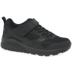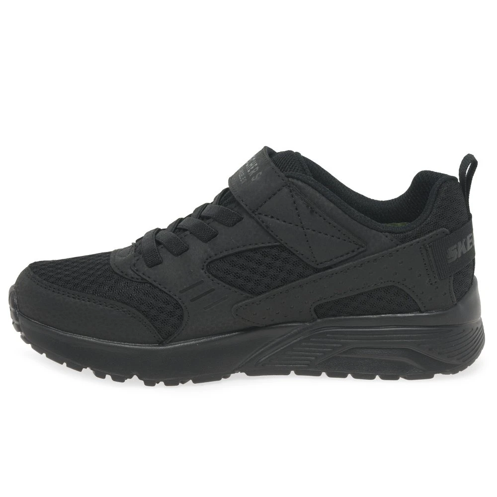A breathable mesh upper and premium, manmade materials make up the trendy Skechers Uno Lite Zelton Boys Trainers, with an air-cooled memory foam insole to keep feet moving longer effortlessly.