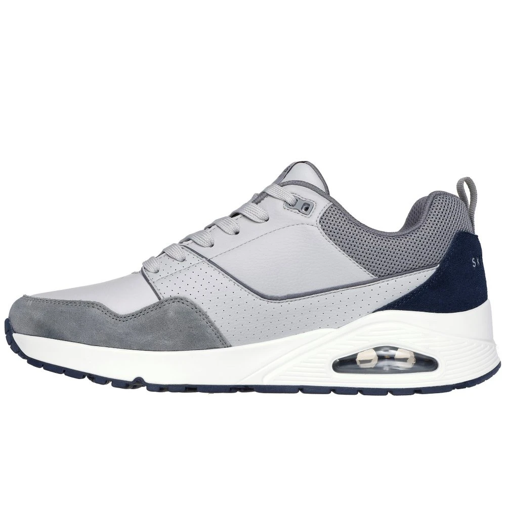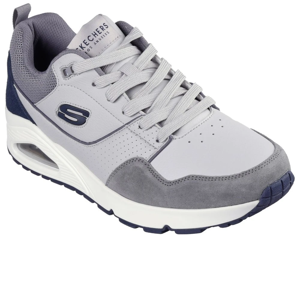 Throwback jogger style meets comfort in Skechers Street Uno – Retro One. This lace-up retro style jogger features a duraleather, leather, and suede overlay upper with a Skechers Air-Cooled Memory Foam insole and translucent Skech-Air airbag midsole.