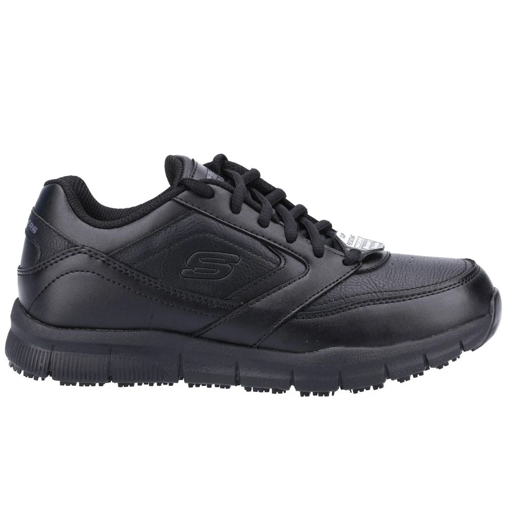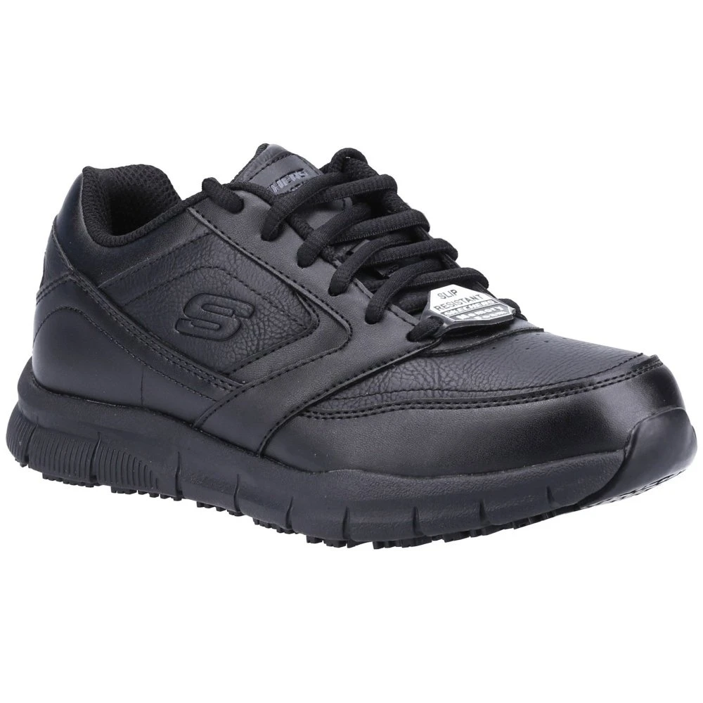 Ensure your comfort, safety and good looking style wearing the SKECHERS Work Relaxed Fit: Nampa – Wyola SR shoe. Leather-textured synthetic upper in a lace up sporty casual comfort work slip resistant sneaker with stitching accents and Memory Foam.
